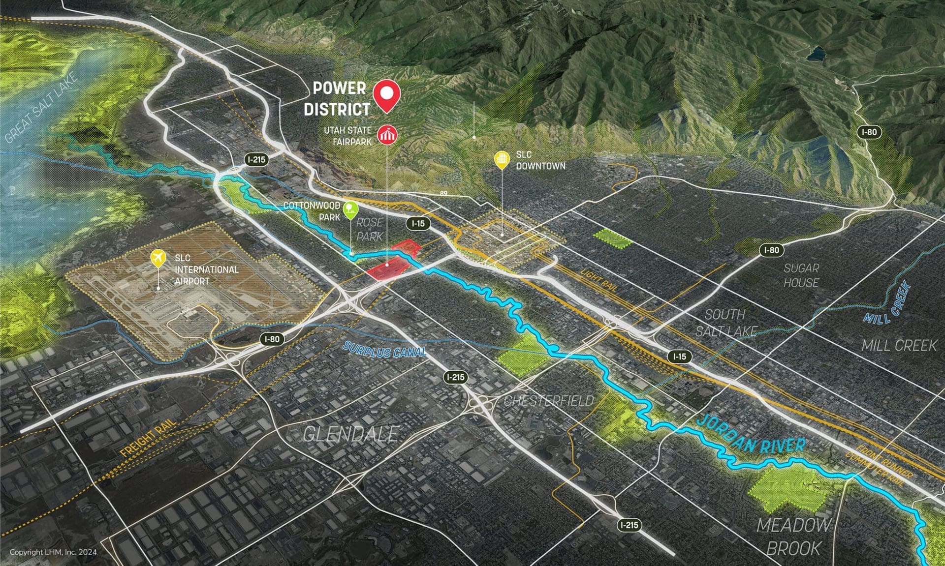 The Power District includes a $3.5+ billion private investment that provides a generational opportunity to energize the gateway neighborhood of Utah’s Capital City by enhancing two state amenities—the Jordan River and Utah State Fairpark. Historically, development in Utah has mostly ignored the Jordan River rather than featuring it. The Power District will bring this underutilized state asset to life and will create a walkable mixed-use experience on both banks of the river. The development will also highlight the cultural legacy of the Utah State Fairpark, including its rich heritage of agriculture. The Power District will partner with the State Fairpark and will build upon and incorporate its already established master plan into the overall development.